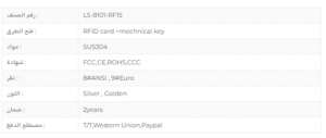 1. الفتح بواسطة بطاقة RFID + مفتاح ميكانيكي في حالات الطوارئ
